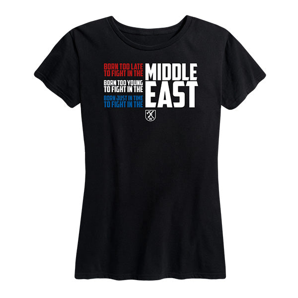 Womens Born Too Late Too Fight In the Middle East Tee